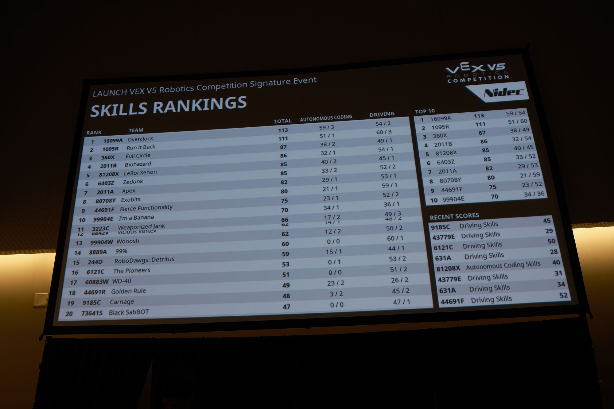 VEX V5RC Live Data - October 19, 2025